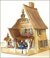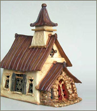 With a few exceptions the roof lifts away to allow the insertion of a tea light or other lighting. Each piece is marked in the inside of the back roof with the title of the house, the number and edition size, Jan Richardson and in some instances the name or initials of the assistant builder as well as Windy Meadows Pottery, Knoxville, Maryland; Ocean Park, Washington or Safety Harbor, Florida and St Petersburg, Florida. Also the year of construction is noted. In the case of a roof that has no obvious front or back "Front" is written on the inside of the front roof. Other authentications may be found in the number on the front of the house and the "Jaana" button on the back; a small clay seal about ½" diameter on the back of the house. A few early editions had a removable section in the back for candle insertion and documentation was written on this section. In the early years of Windy Meadows Pottery, especially 1977-78, there were a great number of one of a kind houses. Most of these became part of collections in the mid Atlantic states.